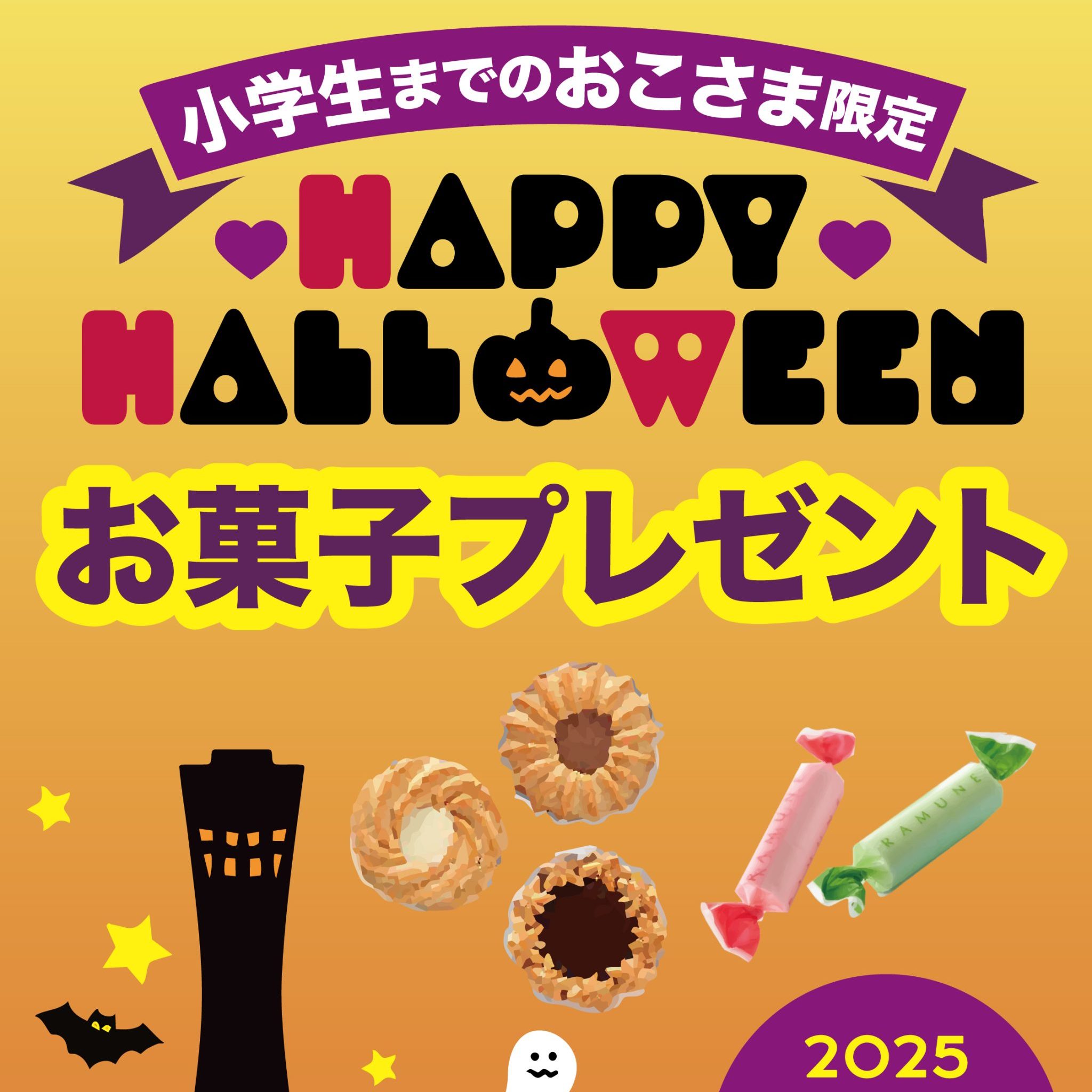 【10月30日(木)・31日(金)】HAPPY HALLOWEEN♪小学6年生までのおこさま限定でお菓子プレゼント!