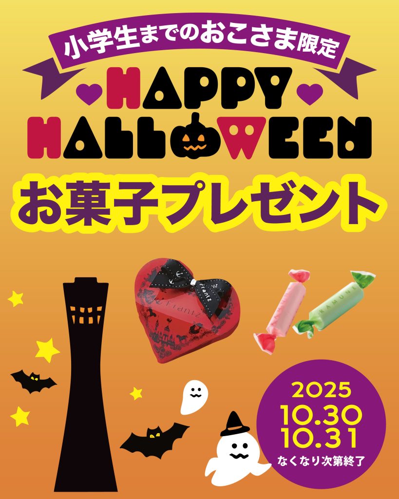 【10月30日(木)・31日(金)】HAPPY HALLOWEEN♪小学6年生までのおこさま限定でお菓子プレゼント!